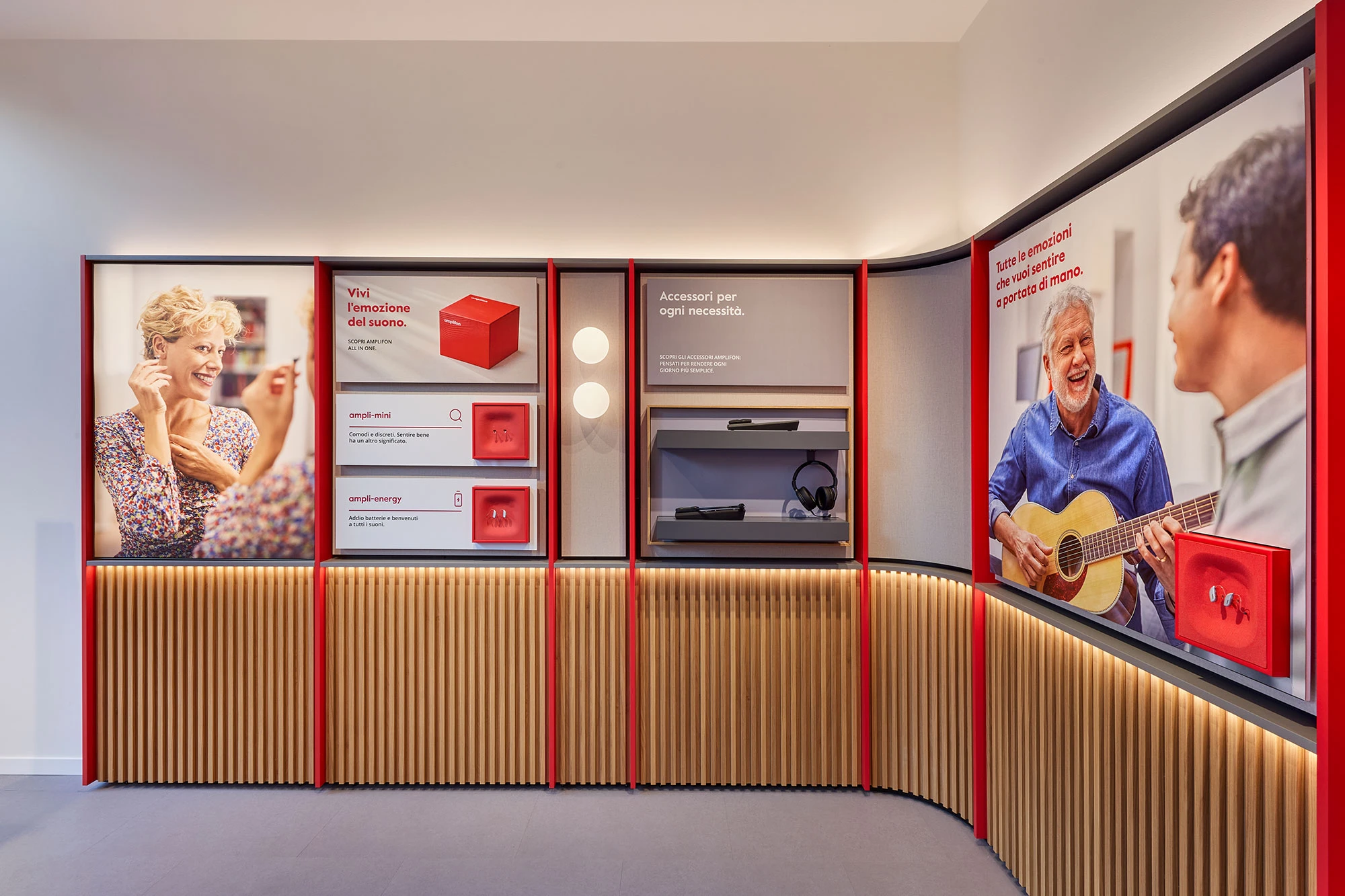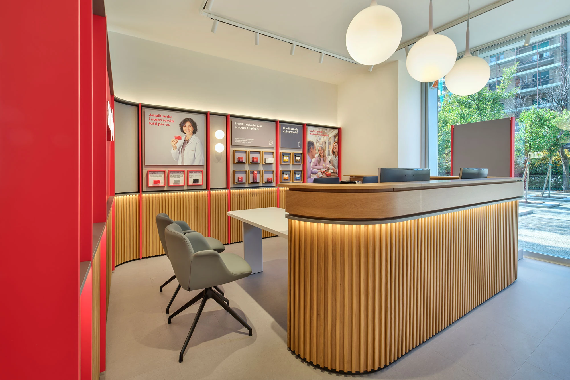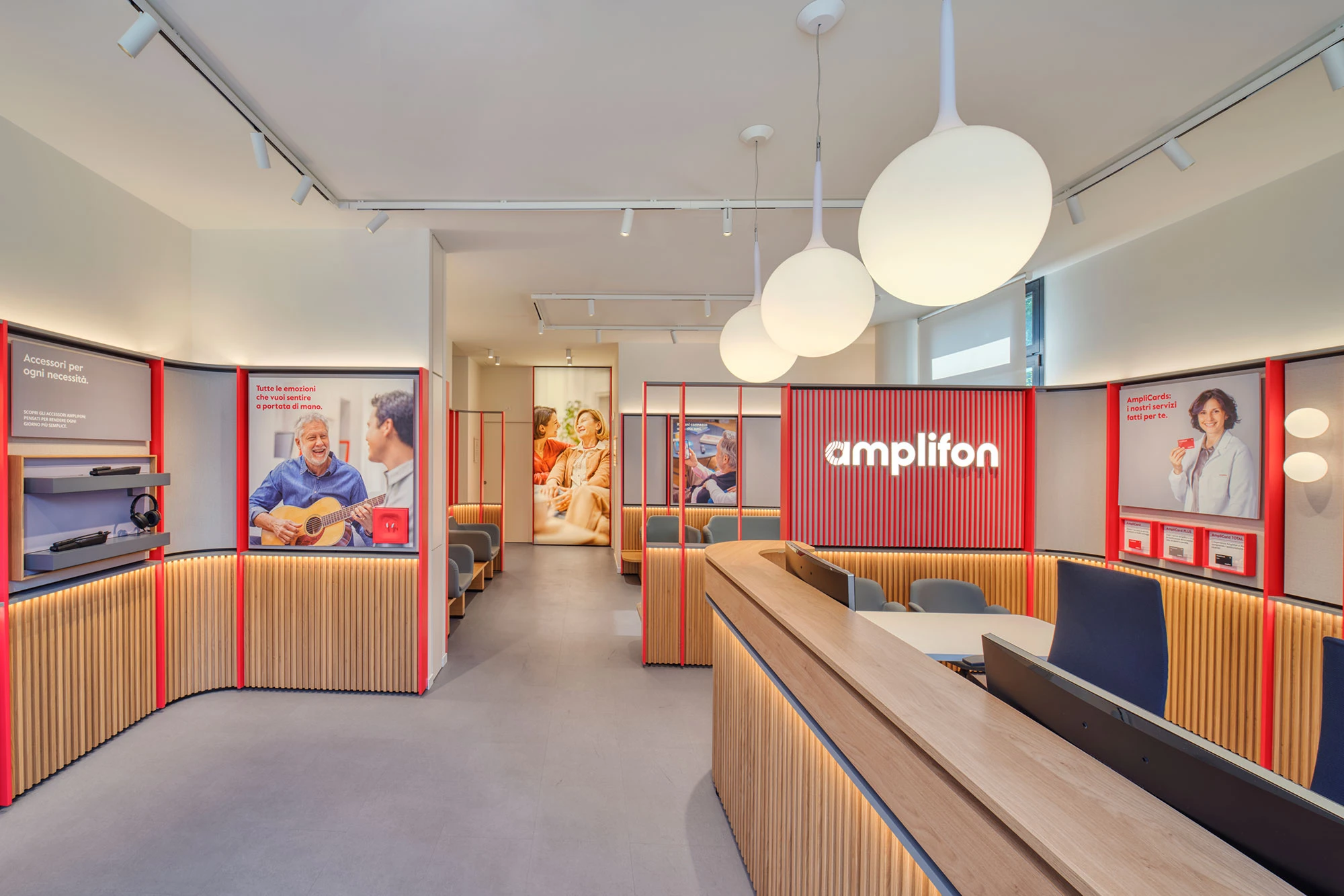 In 2021 BBA won an invited competition for the definition of the new Store Concept for Amplifon. The new store concept is a crucial element in the succesful global strategy of improvement and enhancement of the Brand, which has a strong strategy of acceleration and upgrading of the stores network. The design of the new concept is the result of an activity in coordination with Amplifon’s consultants in order to achieve innovative results in terms of customer experience, and of design related to the medical-related rooms. A massive campaign of new stores implementation is foreseen and under developement.