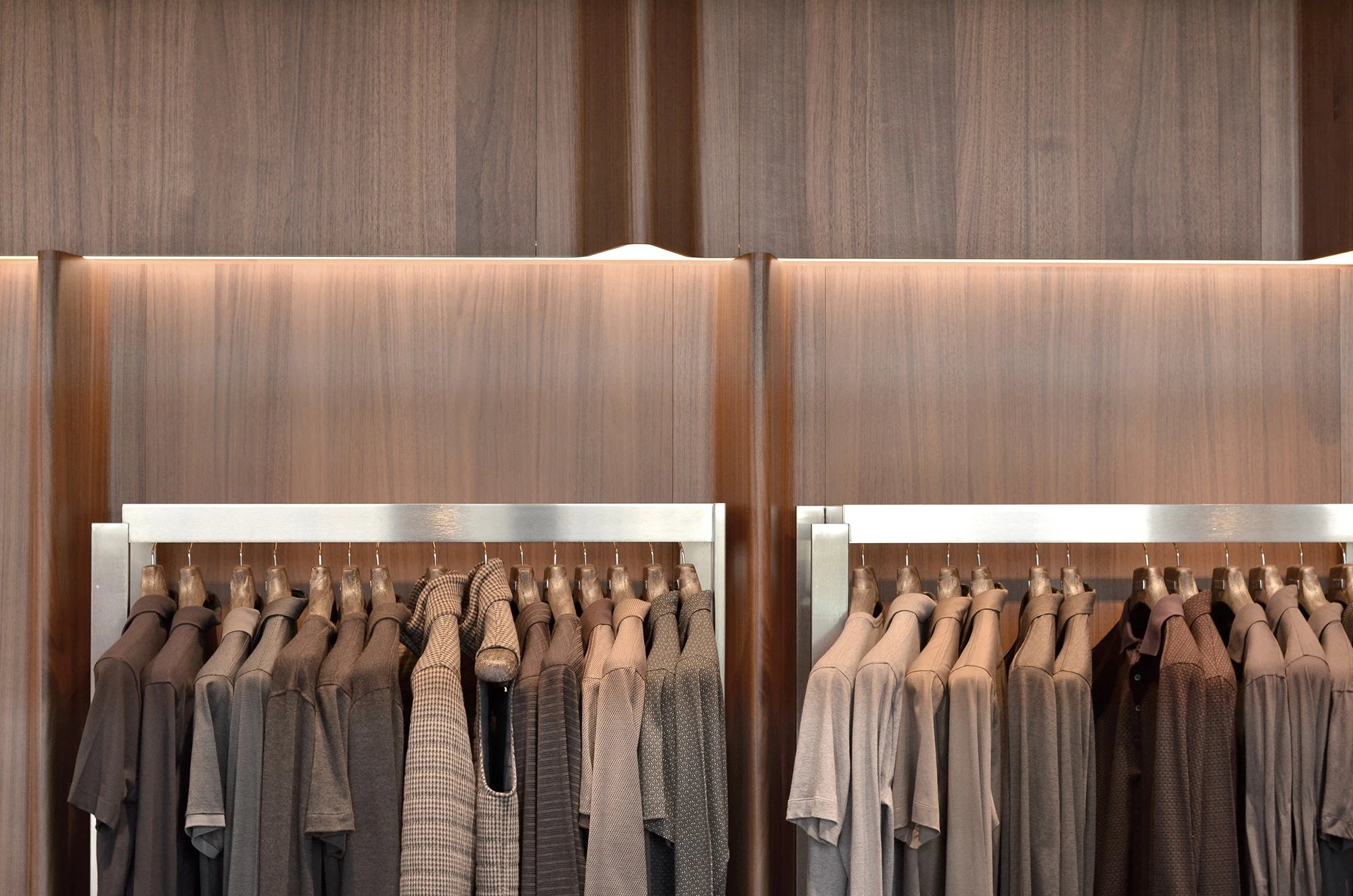 BBA is invited to design the Canali Showroom in Milan. The aim of the project is to design a space with soft and organic forms in an environment designated to host offices and thus caracterized by a strong rational aesthetic. The central body of the space is a three-dimensional wall that draws inspiration from a rolled-out fabric and which evoques the lightness of a curtain. The waves of the wooden fabric define the position of the display elements and the access doors to the service areas.
