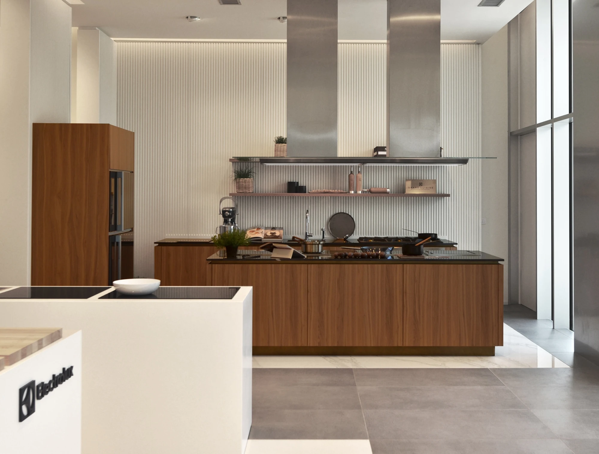 BBA Studio designed the milanese Showroom for Electrolux, we worked with the aim of finding the key for the display of a mix of products. The goal was achieved with a linear design with some well calibrated highlight points.