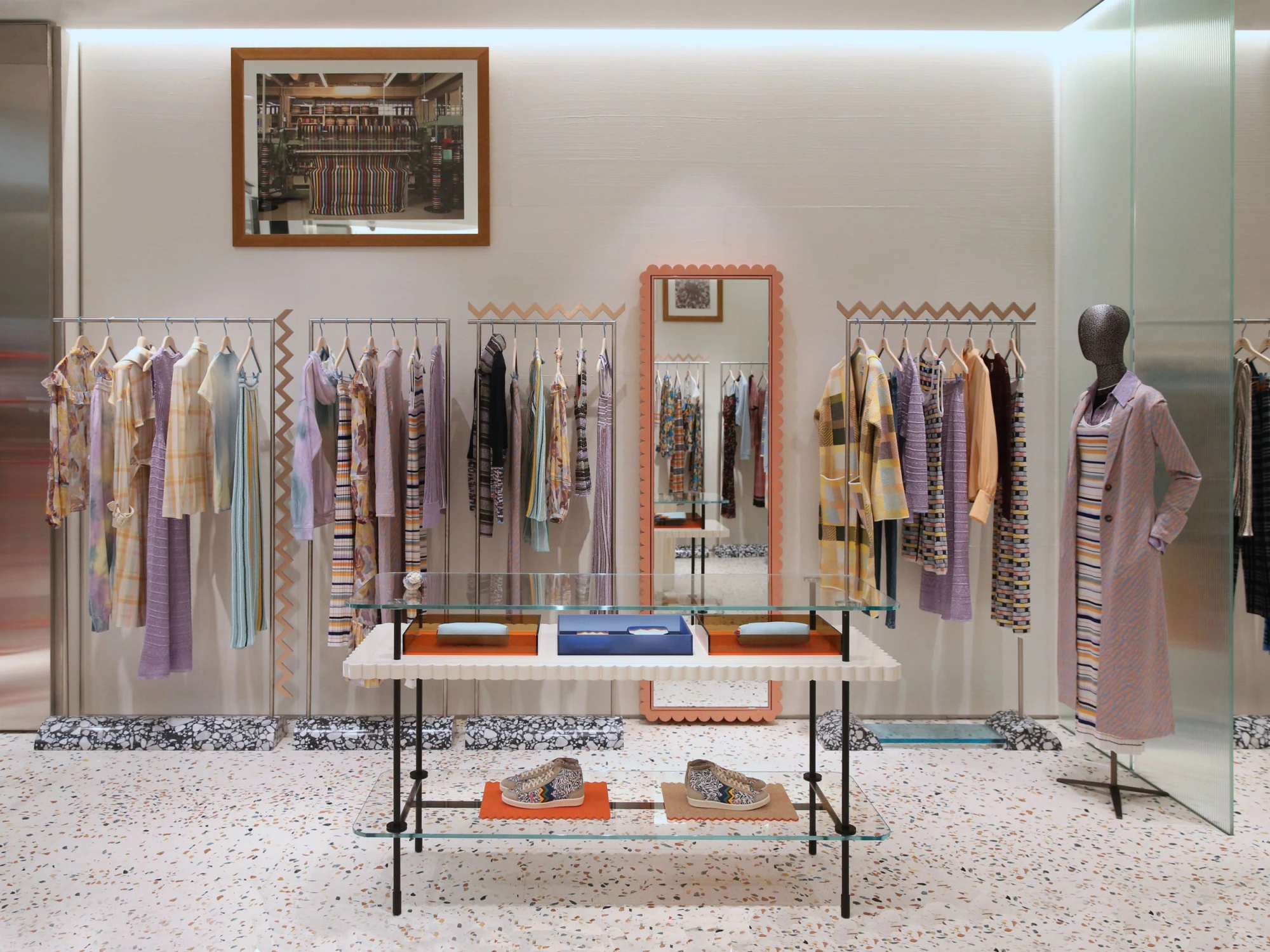 The studio accepted Missoni's challenge to design the new concept for its global boutiques. The new look aims to create a family environment that conveys the brand's values: the shapes, colors, and sustainable materials of the furnishings reflect the playful character of the collections, while the terrazzo floor adds freshness to the space. A play of transparencies with glass panels stimulates curiosity, highlighting the usefulness of the chosen materials.