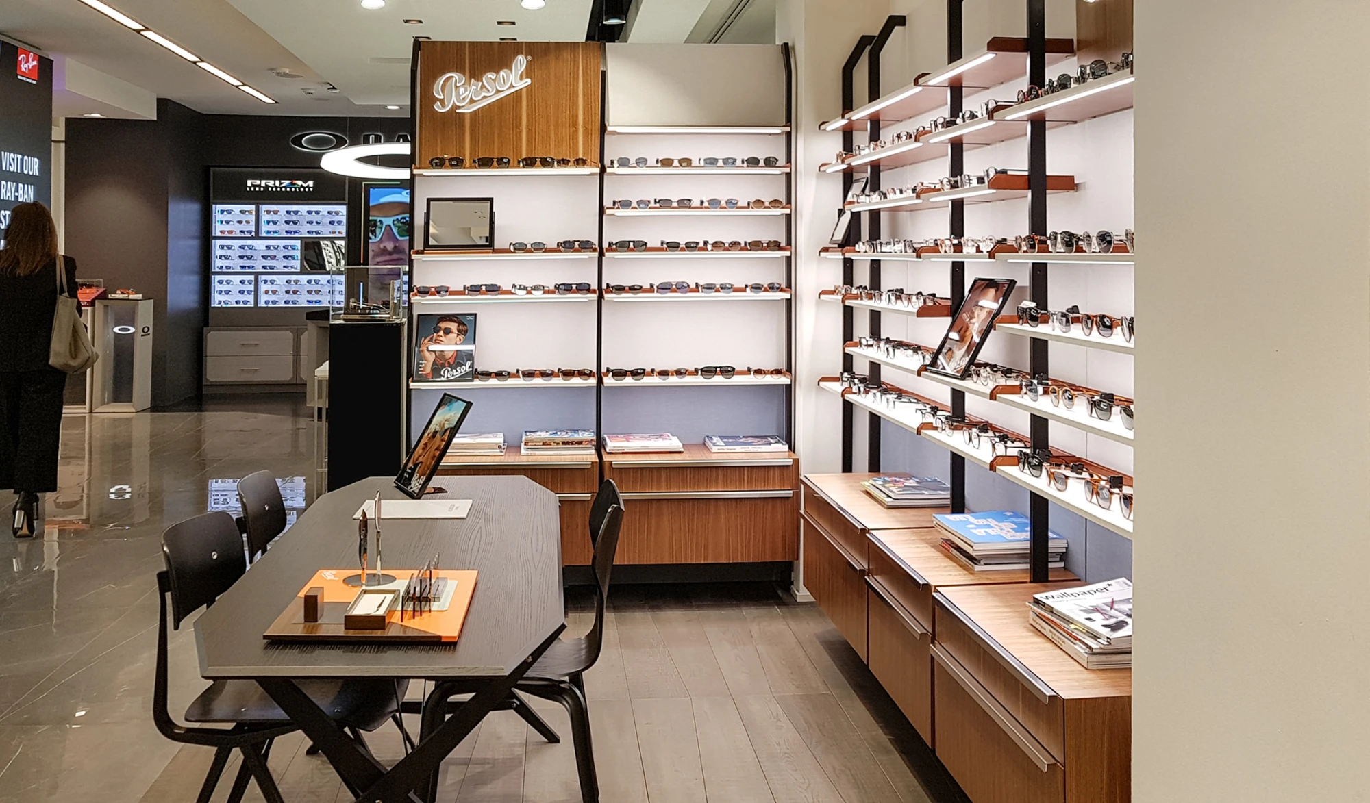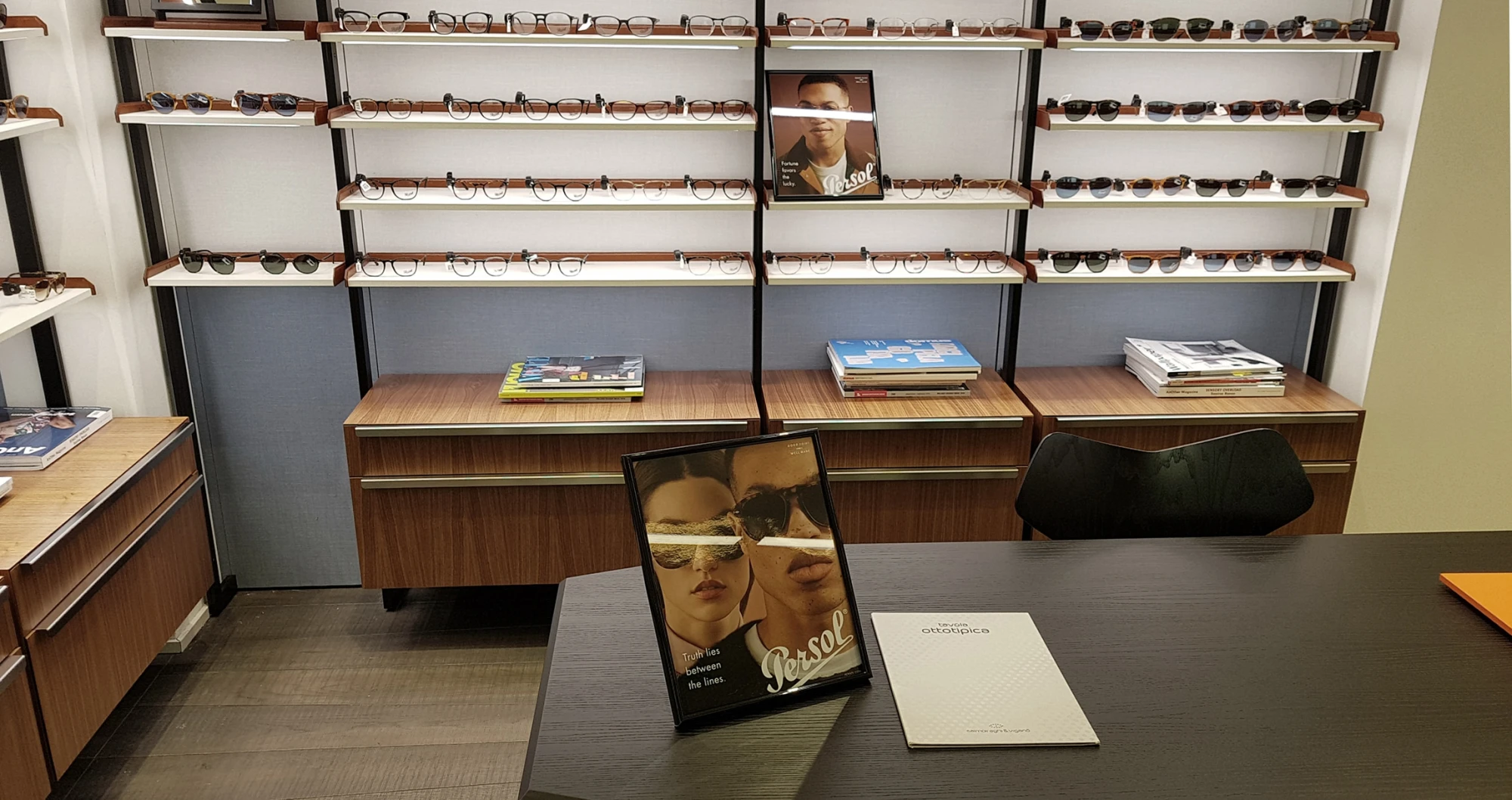 Persol is an Italian brand with over 100 years of history. Starting by producing glasses and lenses for sportsmen and aviators, the brand reached the mass market thanks to its popularity amongst famous personalities from the world of sports and entertainment. BBA concept reaches back to the aesthetics of the 50s through the use for example of the wallpaper, but enriched with contemporary details made of painted metal and walnut wood.